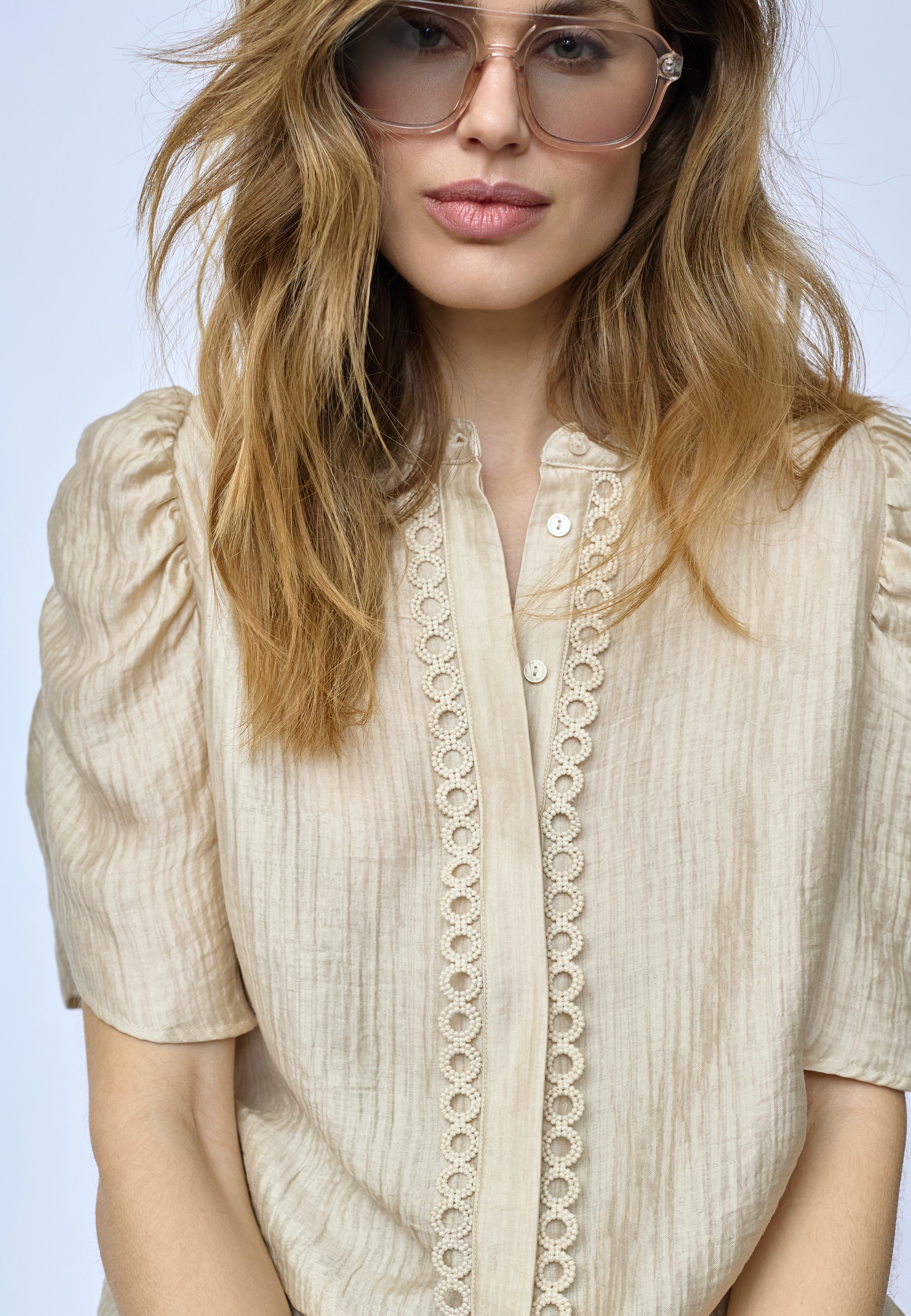 TassyCC Lace SS Puff Shirt - Bisquit