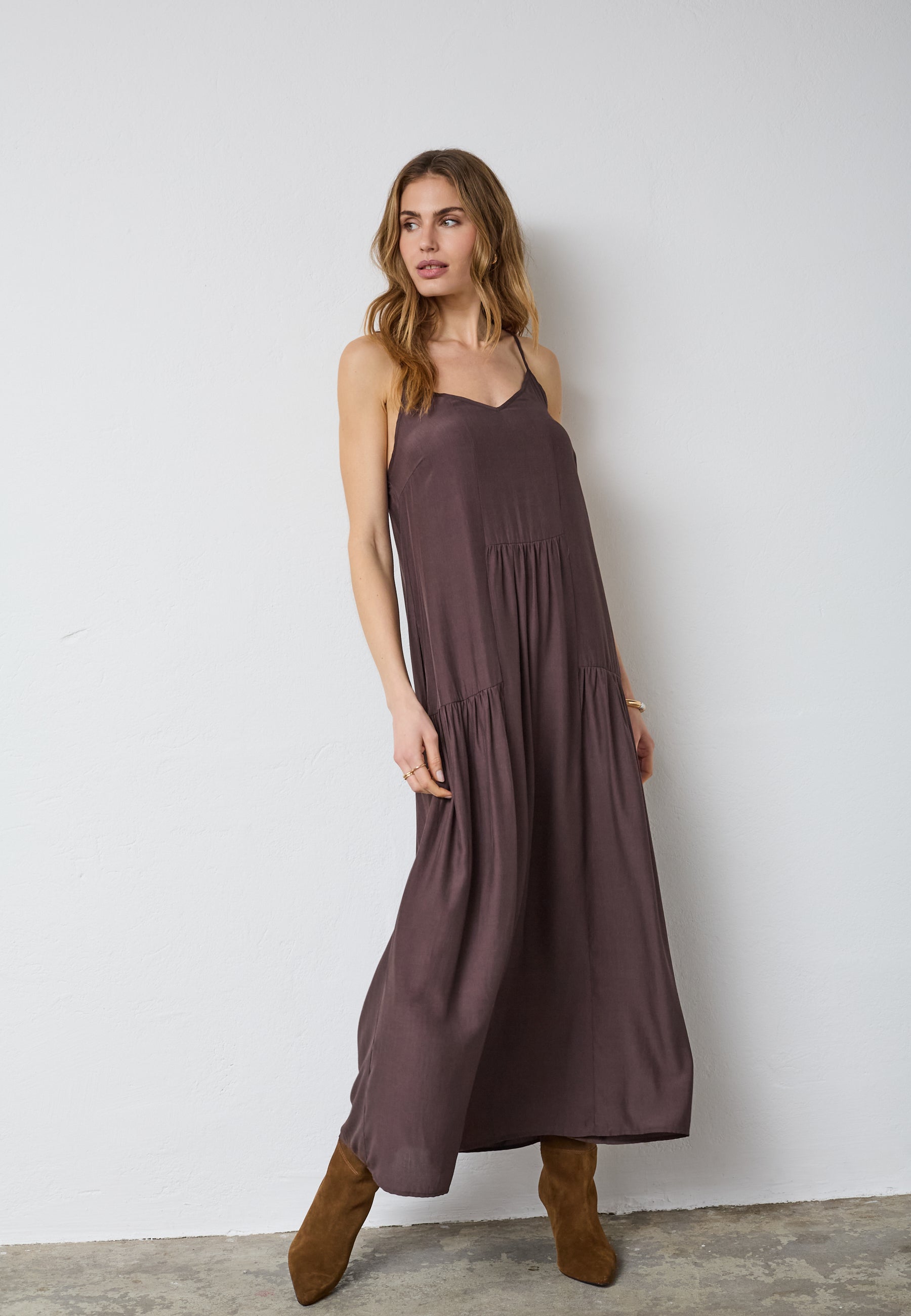SunriseCC Block Strap Dress - Dark Brown