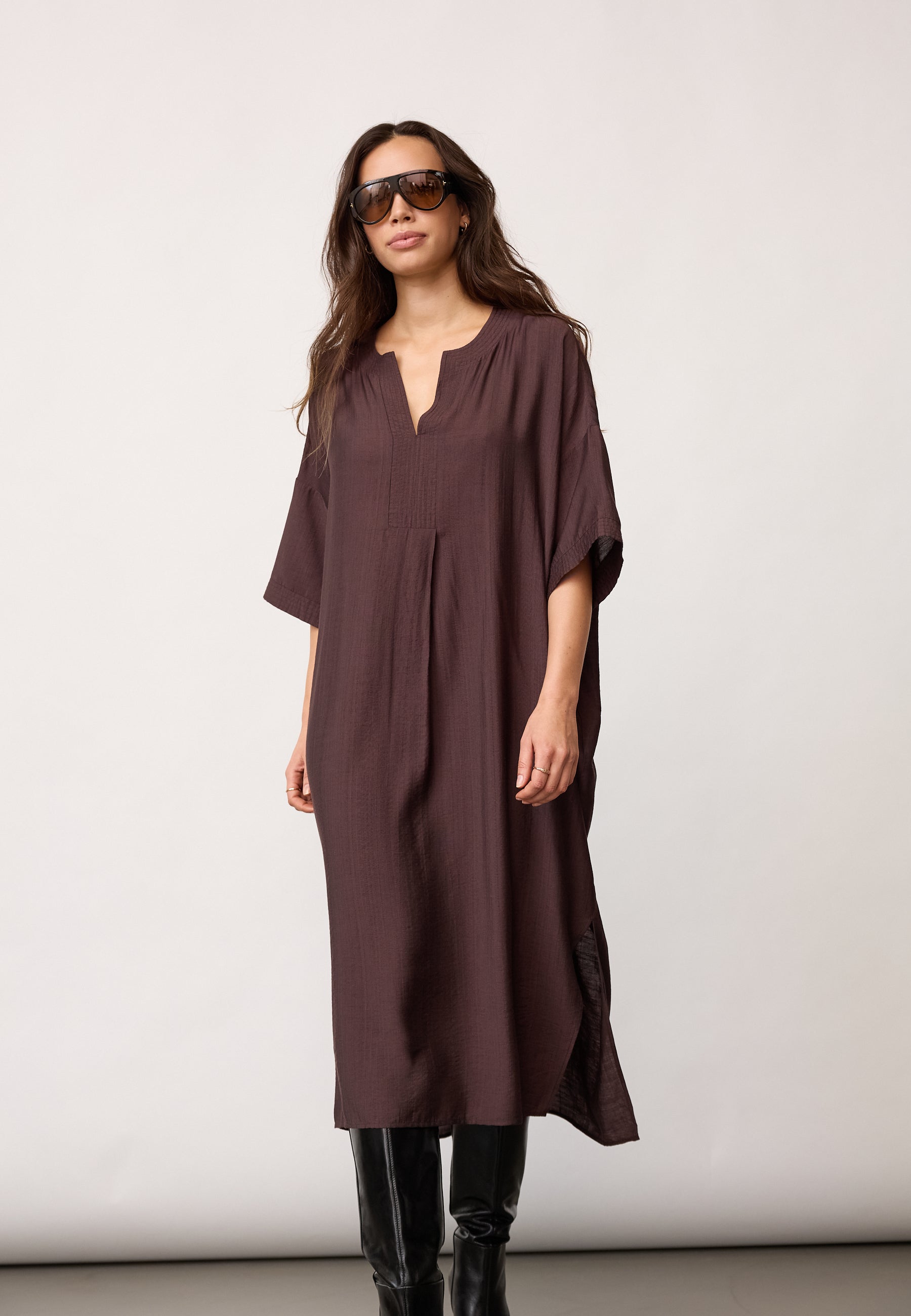 HeraCC Tunic V-Dress - Dark Brown