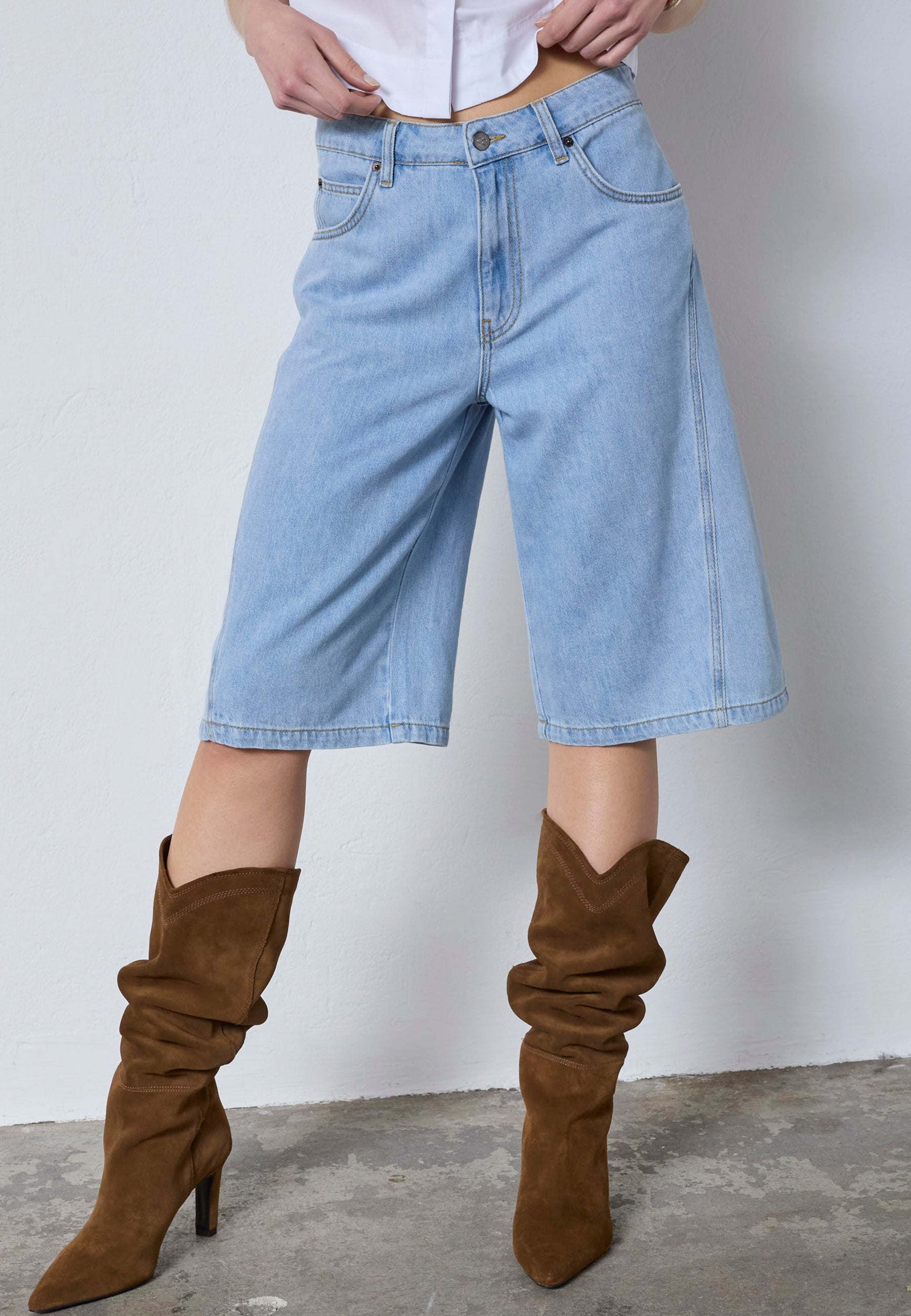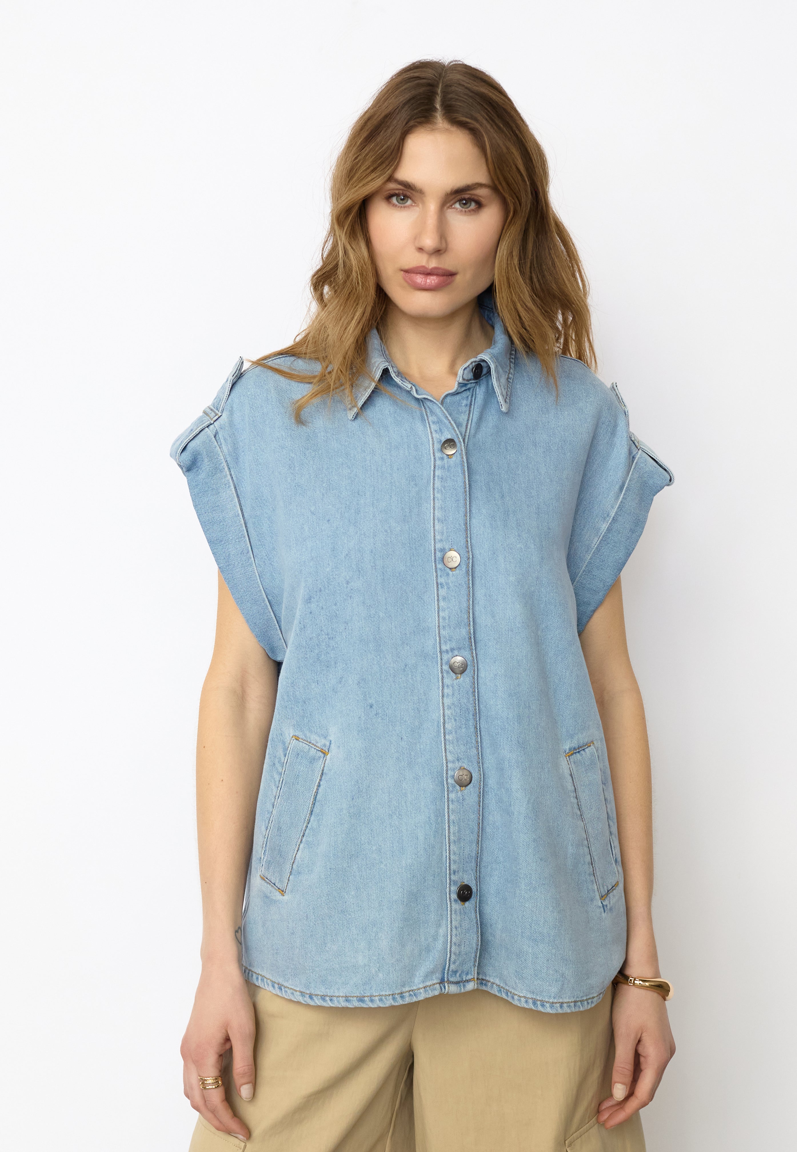 For warmer days, outer layers can be combined with lighter pieces such as denim or relaxed silhouettes, creating a look that feels considered without becoming heavy.