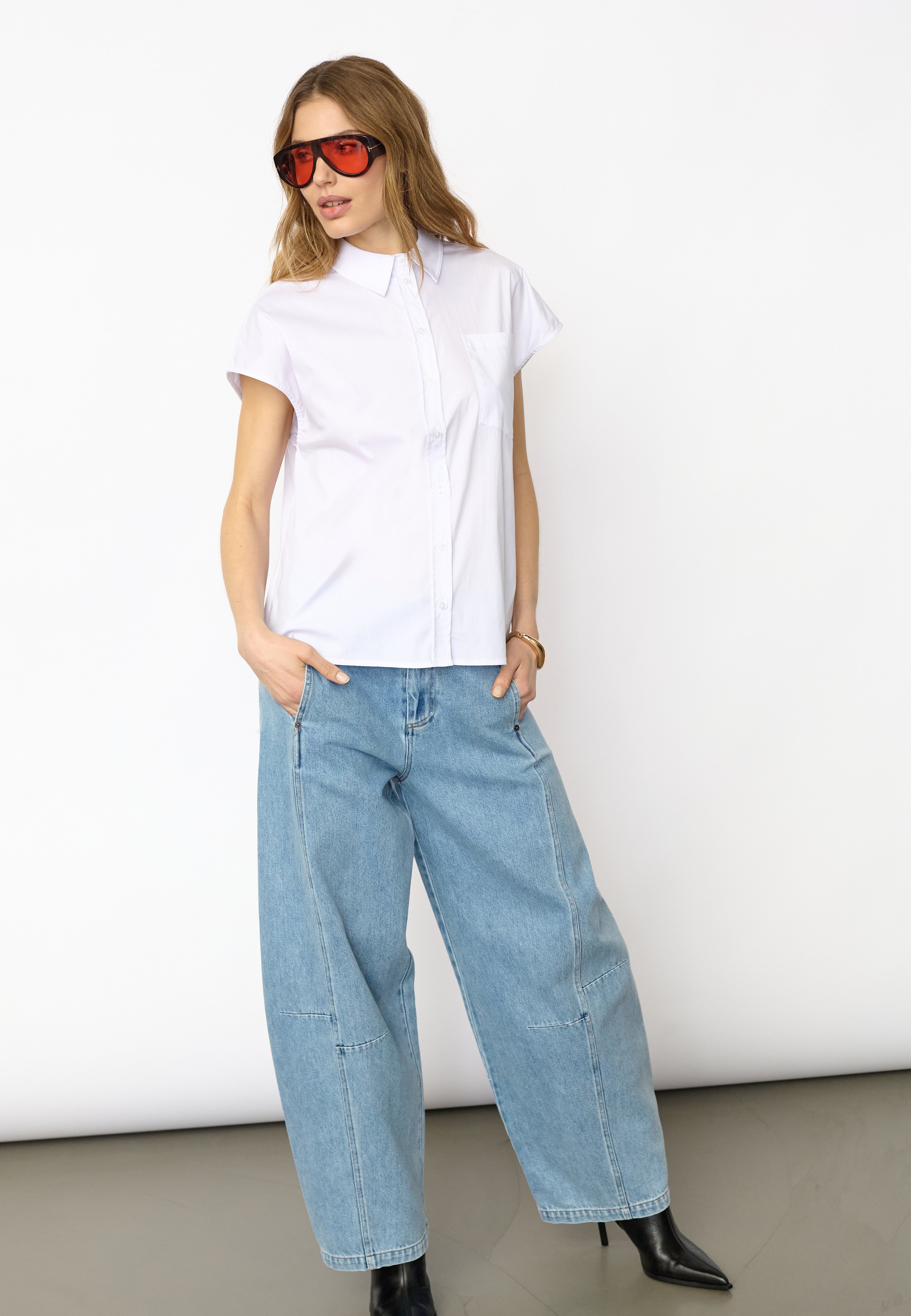 ElaraCC Slit Back SS Shirt - White