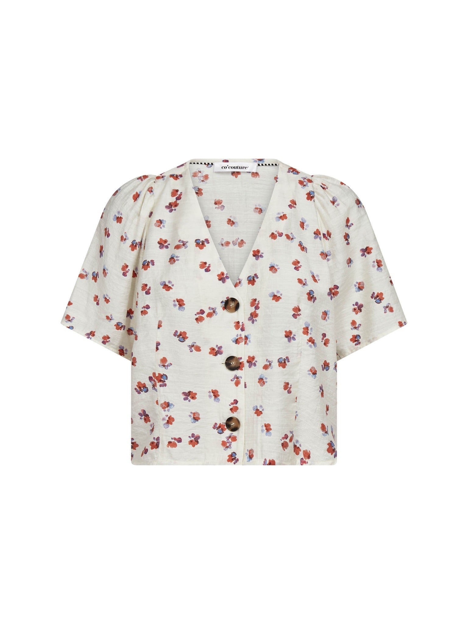 MarisCC Flower SS V-Shirt - Off white